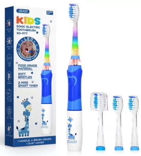 Szczoteczka Soniczna SEAGO SG-977 Dla Dzieci w wieku 3-12 lat + 4 końcówki
