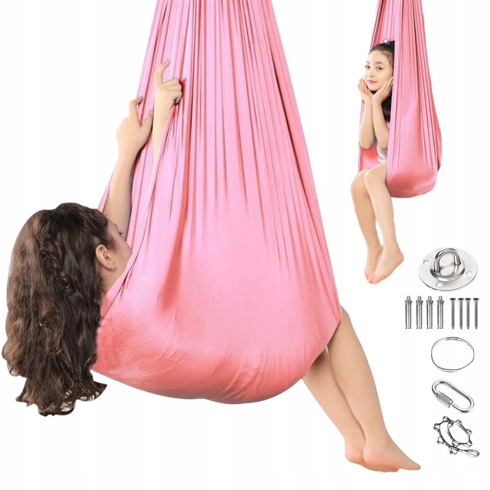 Dziecięcy hamak-huśtawka jest wykonany w 100% z nylonu o wysokiej gęstości, dzięki czemu jest lekki i odporny na rozdarcia, a jego nośność wynosi do 90 kg (200 funtów). Supermiękka, rozciągliwa z boku i zabezpieczona przed wywróceniem konstrukcja sprawia, że zabawa i relaks dla dzieci są łatwiejsze i bezpieczniejsze, gdy potrzebują rozładować stres. Huśtawka terapeutyczna z tkaniną do huśtania w pomieszczeniach daje dzieciom wiele możliwości zabawy na huśtawce, czytaniu, wykonywaniu salt i obrotów.