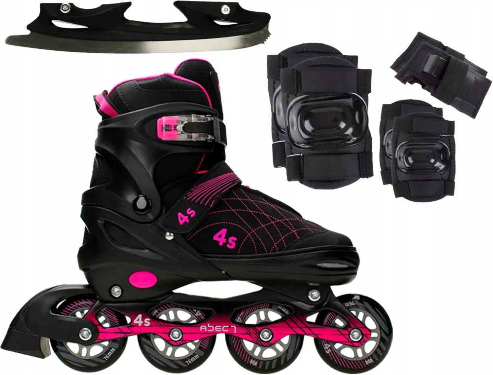 Łyżworolki regulowane 2w1 4S - Stylowe, regulowane łyżworolki 2w1 marki 4S przeznaczone do jazdy rekreacyjnej. Dzięki swojej uniwersalności są idealnym elementem całorocznej aktywności fizycznej. Znakomite wzornictwo, nowoczesny design, solidne wykonanie.