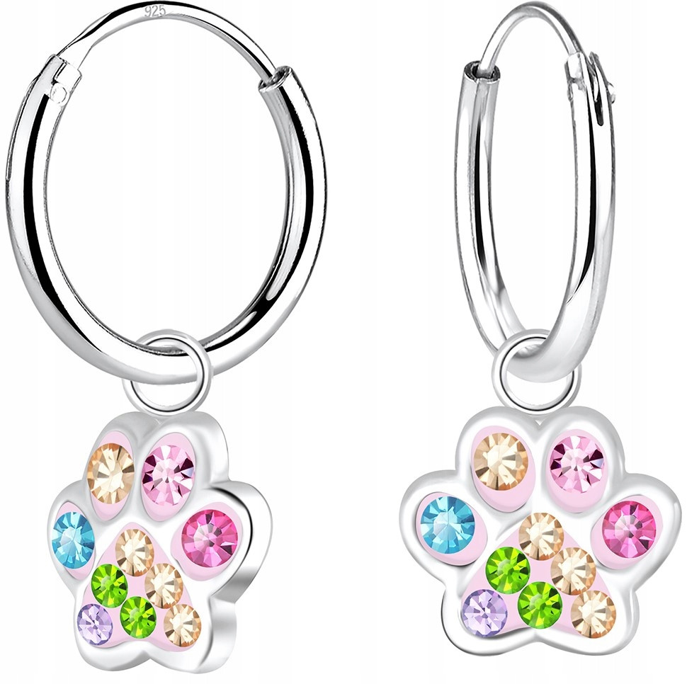 ✅ KOLCZYKI ŁAPKI SREBRNE DLA DZIECI WISZĄCE (88/8)