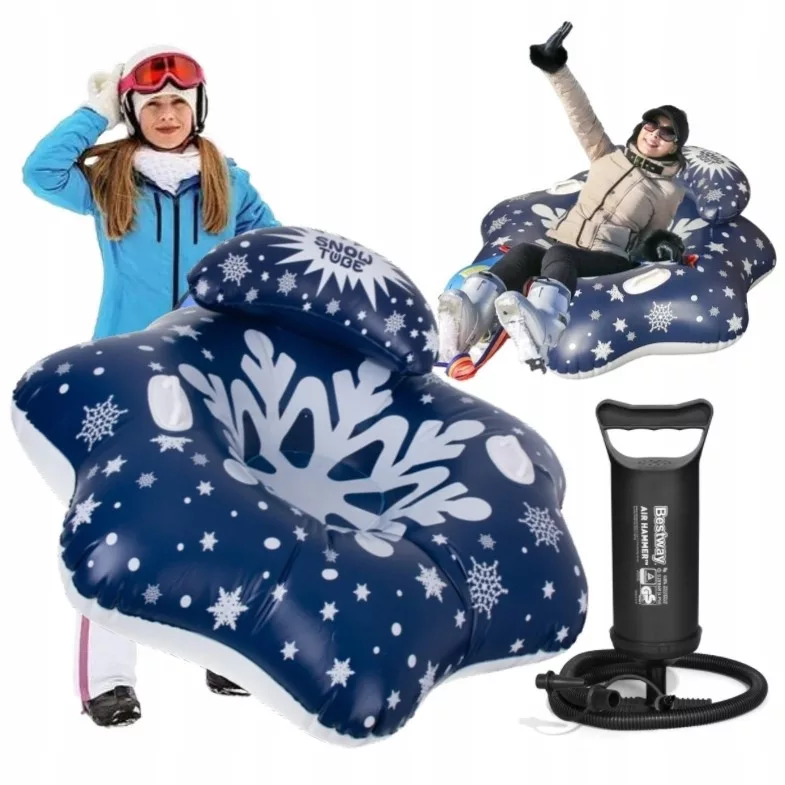 Rewelacyjne sanki dmuchane na śnieg. Super alternatywa dla tradycyjnych sanek. Zachęcą każde dziecko do zimowych szaleństw na śniegu. Z dwóch stron ślizgacza umieszczono rączki do trzymania. Max waga: do 110kg. Średnica: 110cm.