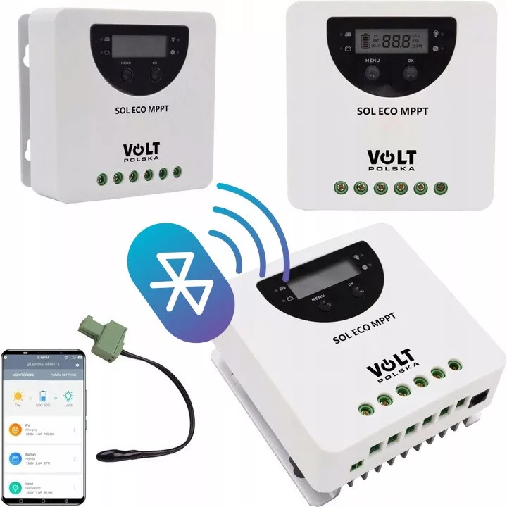 Model SOL MPPT 20A wyposażony jest w funkcję komunikacji bezprzewodowej, dzięki czemu można zdalnie sterować i podglądać parametry pracy regulatora.