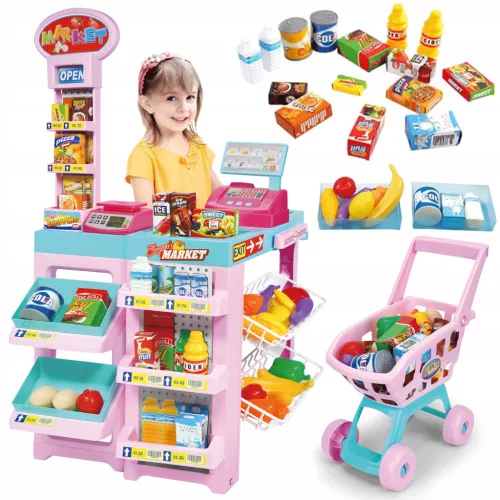 DUŻY MOBILNY SUPERMARKET DLA DZIECI Z AKCESORIAMI