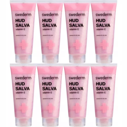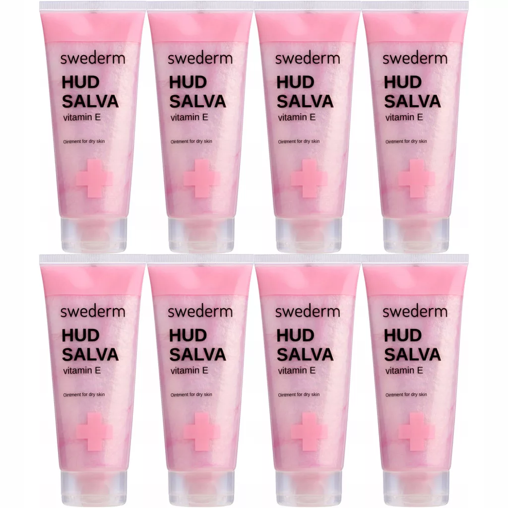 Krem do rąk SWEDERM Hudsalva vit E maść natłuszczająca do suchej skóry 800ml (8 x 100ml). HUDSALVA VITAMIN E - maść do skóry suchej. Wyjątkowo skuteczna maść regenerująca i natłuszczająca, idealna do codziennej pielęgnacji skóry suchej, odwodnionej oraz skłonnej do podrażnień. Jej formuła działa na najbardziej wymagające partie ciała – dłonie, stopy, łokcie, czy usta – przynosząc natychmiastowe ukojenie i długotrwały komfort. Delikatna kompozycja zapachowa sprawia, że codzienna pielęgnacja staje się wyjątkowo przyjemnym rytuałem.
