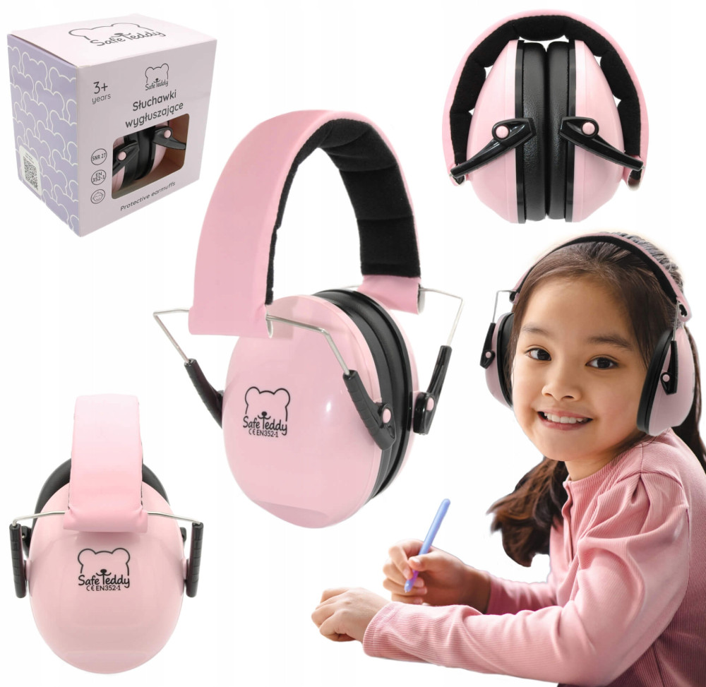 Wygłuszające słuchawki ochronne dla dzieci różowe od 3 lat SafeTeddy