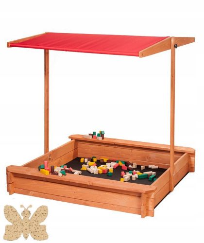 Wyposażona jest w poliestrowy wodoodporny daszek chroniący dzieci przed warunkami atmosferycznymi jak słońce czy deszcz. Można regulować zarówno wysokość jak i pochylenie daszka. Po zakończeniu zabawy można opuścić daszek zabezpieczając piasek i zabawki przed warunkami atmosferycznymi oraz zanieczyszczeniami. Daszek pokryty jest wodoodporną bardzo wytrzymałą tkaniną poliestrową w kolorze pomarańczowym. Wyprofilowany spadek dachu uniemożliwi zaleganie na nim wody.
