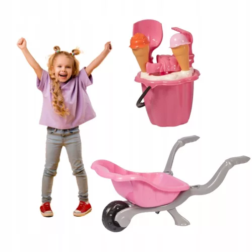 Sandspielset – Schubkarre, Eimer, Rechen, Schaufel, Rosa