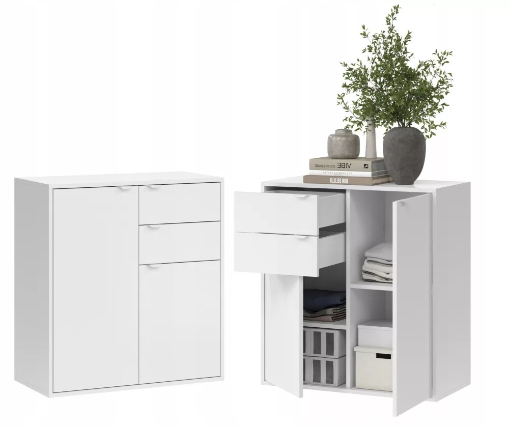 WEISSER SCHRANK MIT ZWEI TÜREN UND ZWEI SCHUBLADEN LUNA 2D2S