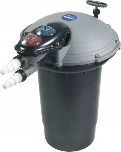 Nowoczesny, samooczyszczający filtr wstępny do oczka wodnego. Można go stosować w niemal wszystkich instalacjach filtracyjnych zasilanych pompą instalując go przed filtrem głównym. Unikalna konstrukcja mechanicznego filtra wstępnego oczyszczania sprawia, że urządzenie nieustannie usuwa zanieczyszczenia z sadzawki. Zastosowanie filtra Saturn Booster w istniejącej już instalacji filtracyjnej zwiększa czystość wody o 30%, jednocześnie zmniejszając konieczność oczyszczania filtra o połowę. Oznacza to, że trwałość pianek jest dwukrotnie dłuższa, a wszystkie czynności konserwacyjne zajmują o połowę mniej czasu. Filtr Saturn Booster można częściowo zakopać w ziemi, obok sadzawki.