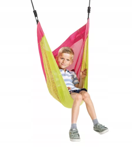To wygodne siedzisko/hamak z pewnością zachęci każde dziecko do zabawy na świeżym powietrzu. Wysoka wytrzymałość materiału i niewielka waga zapewnia pełne bezpieczeństwo korzystania z tej huśtawki. To wspaniały sposób bezpiecznej zabawy połączonej z aktywnością fizyczną. Szerokie zastosowanie w różnego rodzaju konstrukcjach lub zestawach zabawowych niewielkim kosztem zwiększy ich możliwości i funkcjonalność oraz pozwoli je dodatkowo uatrakcyjnić w oczach dziecka. Może być stosowane również oddzielnie.