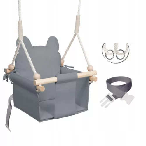 KINDERSCHAUKEL mit BÄREN-RÜCKENLEHNE + SICHERHEITSGURT - für Haus und Garten