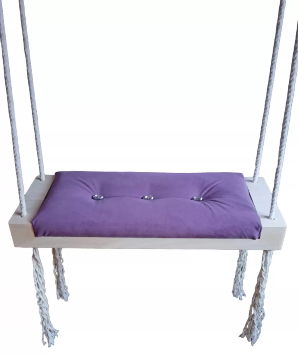 Oferujemy Państwu nową huśtawkę siedzisko na piance o grubości 3cm. Huśtawka wykonana jest z drewna oraz z mięciutkiego siedziska wykończonego materiałem pluszowym. Huśtawkę wykonujemy samodzielnie. Jest to produkt polski.