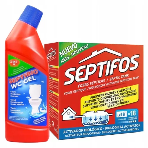 Septifos Aktywator biologiczny do szamba 18 sasz/648g + Septibio żel do WC 750 ml