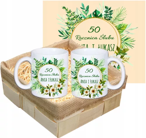 Oryginalny zestaw ECO w drewnianej skrzynce, stanie się wspaniałym prezentem na każdą okazję.Wybierz ten wyjątkowy komplet jako prezent na rocznicę ślubu, a sprawisz obdarowanej parze ogromną radość. Na KUBKACH  znajdą się ORYGINALNE trwałe nadruki . Tak uroczą formą podarunkową sprawisz, że każde wspólne picie kawy czy herbaty, zamieni się w uroczą chwilę.