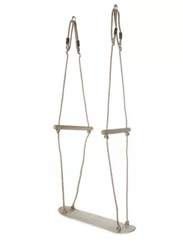 Huśtawa - deskorolka z matą antypoślizgową marki Greenmill przeznaczona jest do użytku domowego wewnątrz i na zewnątrz pomieszczeń. Wytrzymały materiał siedziska i grube liny pozwalają na bezpieczne użytkowanie huśtawki przy obciążeniu do 70 kg. Mata antypoślizgowa do naklejenia na siedzisko oraz zaokrąglone brzegi siedziska dodatkowo zwiększają bezpieczeństwo użytkowania. Boczne drewniane drążki ułatwiają huśtanie również w pozycji stojącej.