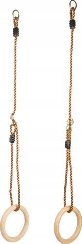 Kółka gimnastyczne dla młodych akrobatów. Na kółkach początkujący akrobaci ćwiczą poczucie pędu i rytmu, a także siłę, równowagę i wytrzymałość. Dzięki dopasowanemu rozmiarowi dzieci o mniejszych dłoniach mogą się świetnie bawić. Długość lin jest regulowana. Huśtawki rozwijają u dzieci zdolności motoryczne, wyobraźnie i kreatywność, koordynację, równowagę oraz zmysły.