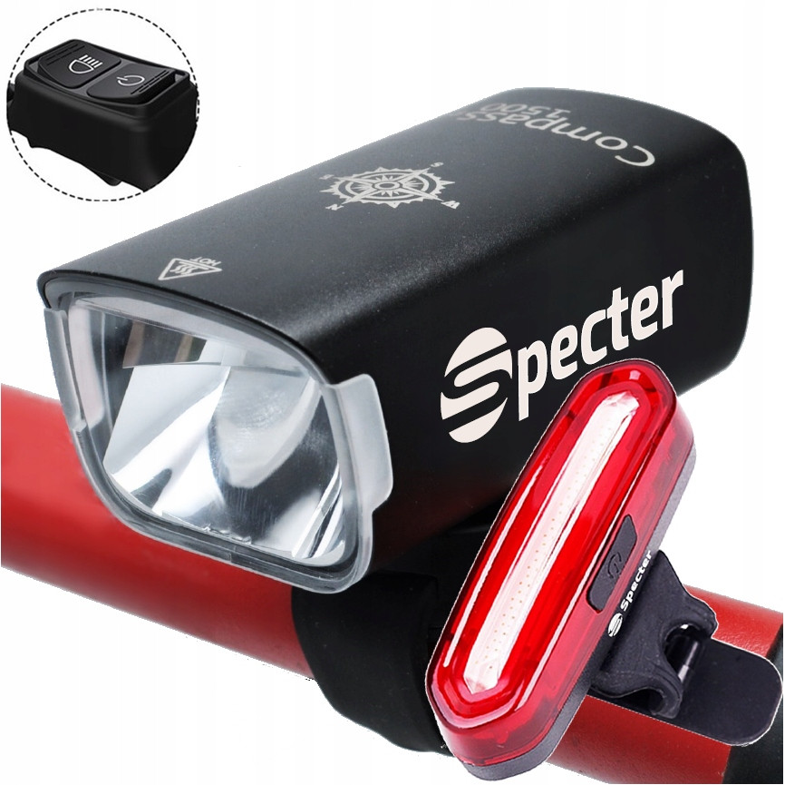 Spectre COMPASS Fahrradlicht 1500 lm USB + Spectre YQ-Y19 Fahrradlicht 120 lm Akku