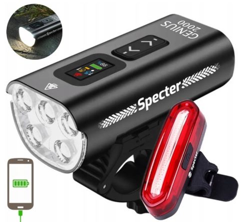 Spectre GENIUS Fahrradbeleuchtung 2000 lm USB + Spectre YQ-Y19 Fahrradbeleuchtung 120 lm Akku