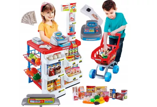 Zabawa w zakupy w supermarkecie nie tylko uczy znajomości poszczególnych produktów i posługiwania się środkami płatniczymi. Pozwala dziecku także zrozumieć zasady funkcjonowania w społeczeństwie oraz poznać obowiązki rodzinne. Fantastyczny zestaw do zabawy w supermarket to kasa fiskalna, papierowe, zabawkowe banknoty, skaner do kodu kreskowego na produktach, waga i lada sklepowa, ustawione na półkach i regałach zróżnicowane produkty oraz wózek na kółkach.