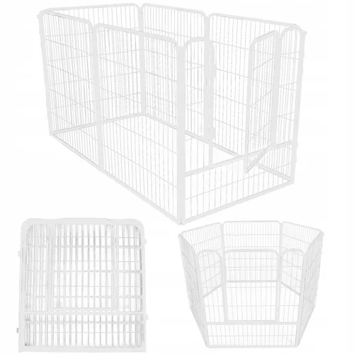 Kojec dla zwierząt składa się z 6 ścianek, dzięki którym możesz dowolnie formować kształt (oktagon / kwadrat). Jest to niezwykła zaleta, ponieważ wybieg dostosowuje pod możliwości i upodobania użytkownika. W pełni rozłożony produkt oferuję swobodną i kontrolowaną przestrzeń dla pupila.