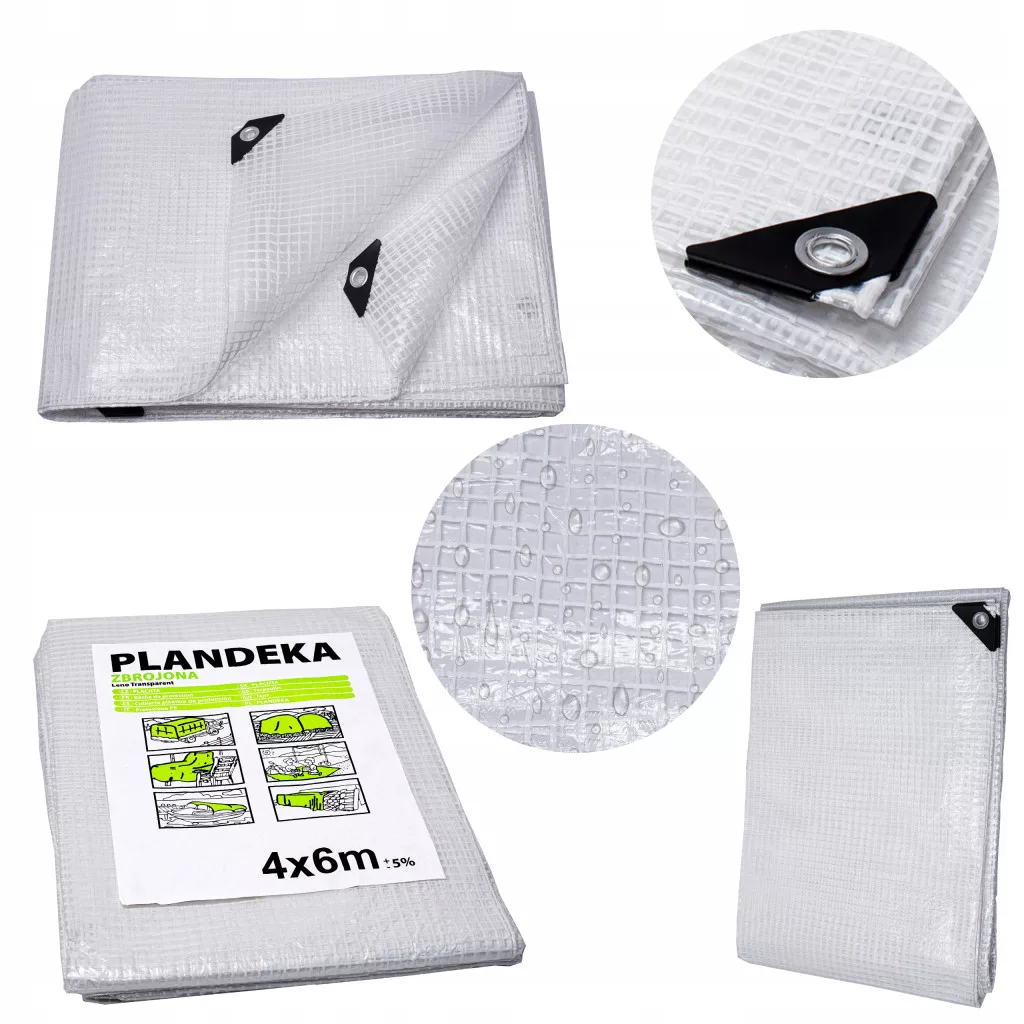 ✔️ Przezroczysta powierzchnia plandeki zapewnia doskonałą widoczność zawartości znajdującej się pod przykryciem.