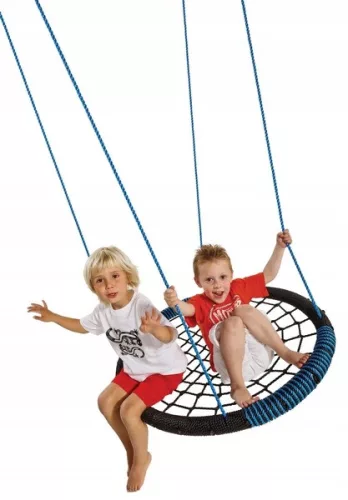 Huśtawka bocianie gniazdo oval to świetna huśtawka dla jednego lub kilkoro dzieci. Materiał, jaki został użyty do produkcji bocianiego gniazda bezpiecznie amortyzuje uderzenia dziecka przy niekontrolowanym wypadki. Bocianie gniazdo wyposażone jest w metalowe kółko do zamontowania.