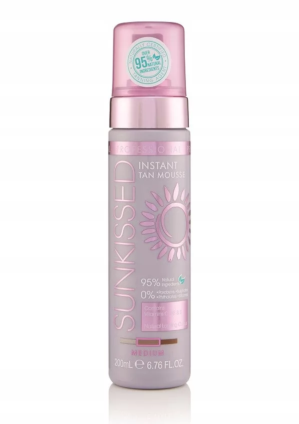Samoopalacz Sunkissed Professional Instant Self Tan Mousse z linii profesjonalnej jest w formie pianki koloru brązowego z zielonym pigmentem. To właśnie dzięki tej zieleni opalenizna nie jest pomarańczowa, a brązowa. Opalenizna rozwija się do 6-8 godzin od aplikacji. Posiada luksusową, nawilżającą formułę. Ten profesjonalny mus do opalania natychmiastowego posiada zaawansowaną formułę wzbogaconą witaminami: C, B5 i E, która zapewnią efekt jak w salonie, a do tego pomogą wygładzić skórę. Jednocześnie głęboko odżywiają i pomagają chronić skórę. Zapewnia wyjątkową, naturalnie i zdrowo wyglądającą opaleniznę. Posiada przepiękny kokosowy zapach.