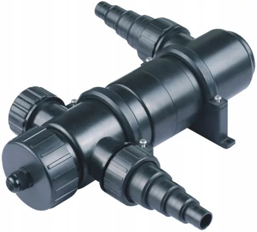Lampa UV-C jest osprzętem który sterylizuje wodę w oczku wodnym. Niszczy wszelkie drobnoustroje, pierwotniaki i bakterie chorobotwórcze . Pomaga utrzymać krystalicznie czystą wodę niszcząc glony, szczególnie dokuczliwe przy zakwicie tzw. efektem zielonej wody