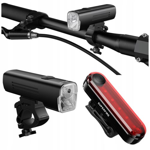 SuperFire BL12 Fahrradlichter 1200 lm Akku + Superfire BTL01 Fahrradrücklichter rot