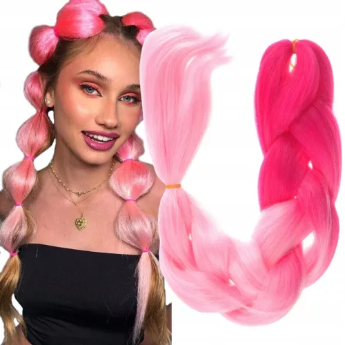 Włosy syntetyczne do kolorowych warkoczyków, kolorowe warkoczyki - B40 dwukolorowe OMBRE, róż 120 cm⭐⭐⭐⭐⭐
