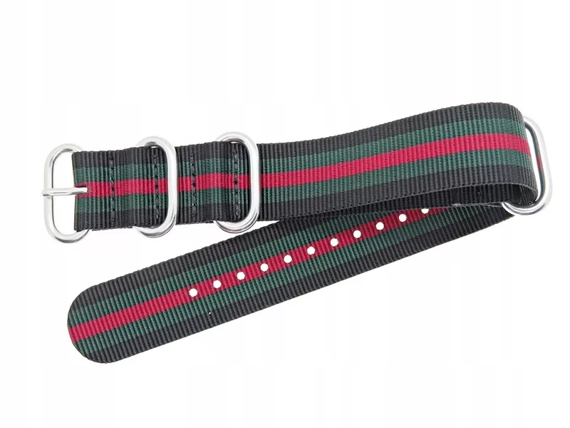PASEK PARCIANY TEKLA N183 18mm NATO CZARNY ZIELONY CZERWONY UNISEX GŁADKI