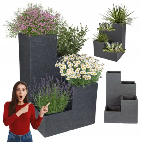 MROZOODPORNA Donica kaskadowa, doniczka o zmiennej konstrukcji stopni, z wytrzymałego tworzywa sztucznego, produkt odporny na niskie temperatury i promieniowanie UV