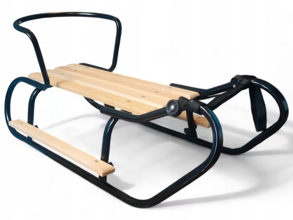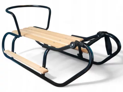 Klasyczne sanki metalowe z oparciem i podnóżkami