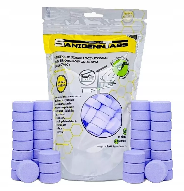 SANIDENN TABS 96 SZT TABLETEK + 4 TABLETKI GRATIS BAKTERIE DO OCZYSZCZALNI