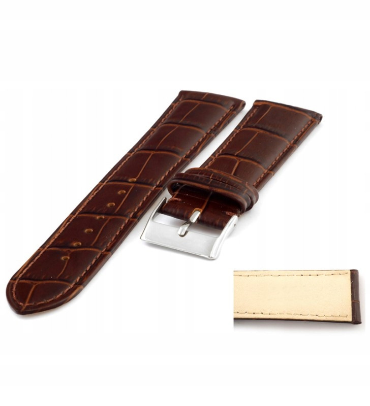 Pasek do zegarka brązowy z przeszyciem wzór aligatora