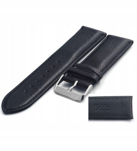 Pasek do zegarka firm Tekla w kolorze czarnym, wykonany z ze skóry cielęcej, bardzo miłej przyjemnej w dotyku. W pasku osadzono stalową klamerkę - sprzączkę w kolorze srebrnym. Cały pasek przeszyty jest nicią w kolorze czarnym.