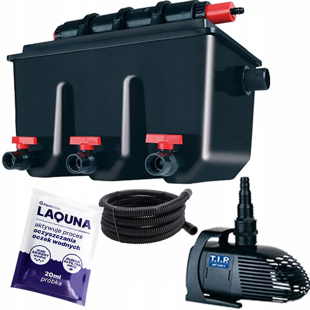 MTS 30000 to 3-komorowy filtr do stawu z profesjonalną technologią UP AND DOWN, zawierający osadnik UV-C (24 W) i pompę (3300 l/h). Odstojnik UV-C sprawia, że glony zlepiają się, dzięki czemu mogą zostać skutecznie usunięte przez system filtrów.