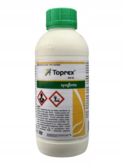 Jedną z substancji aktywnych środka ochrony Toprex od Syngenta jest paklobutrazol, a więc związek z grupy regulatorów wzrostu. Stosowanie go zapobiega nadmiernemu wyrastaniu roślin, które może czynić je podatnymi na wyleganie (trwałe łamanie i pochylenie łodyg). Zjawisko to zagraża plonom, dlatego warto mu przeciwdziałać za pomocą skutecznych preparatów – proponowany w niskiej cenie Toprex jest właśnie takim produktem. Zgodnie z treścią etykiety, koncentrat stężonej zawiesiny do rozcieńczania z wodą hamuje wzrost, co zapobiega przerastaniu, a wzmacnia pędy roślin (szczególnie skuteczny w przypadku rzepaku ozimego). W efekcie potencjał rozwojowy zostaje skierowany na układ korzeniowy (roślina zyskuje większą stabilność) oraz stymuluje szybszy rozwój liści i kwiatostanów.