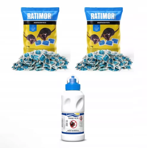 PASTE FÜR MÄUSE UND RATTEN BLAU 2X1 KG + TOXAN-GIFTFLÜSSIGKEIT 200 ML