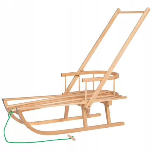 HOLZSCHLITTEN MIT RÜCKENLEHNE UND SCHIEBER FÜR KINDER HERSTELLER +KOSTENLOS