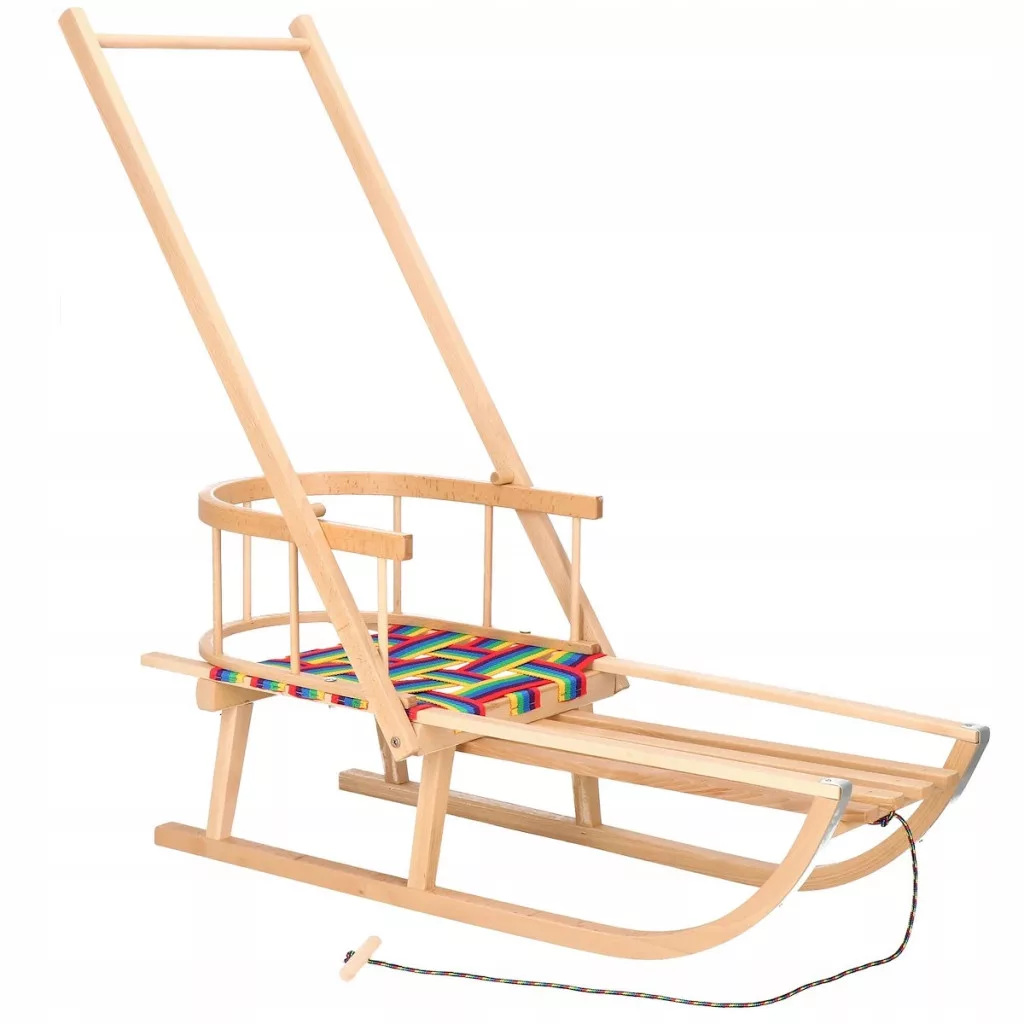 SANKI DREWNIANE Z OPARCIEM, PCHACZEM I SZNURKIEM