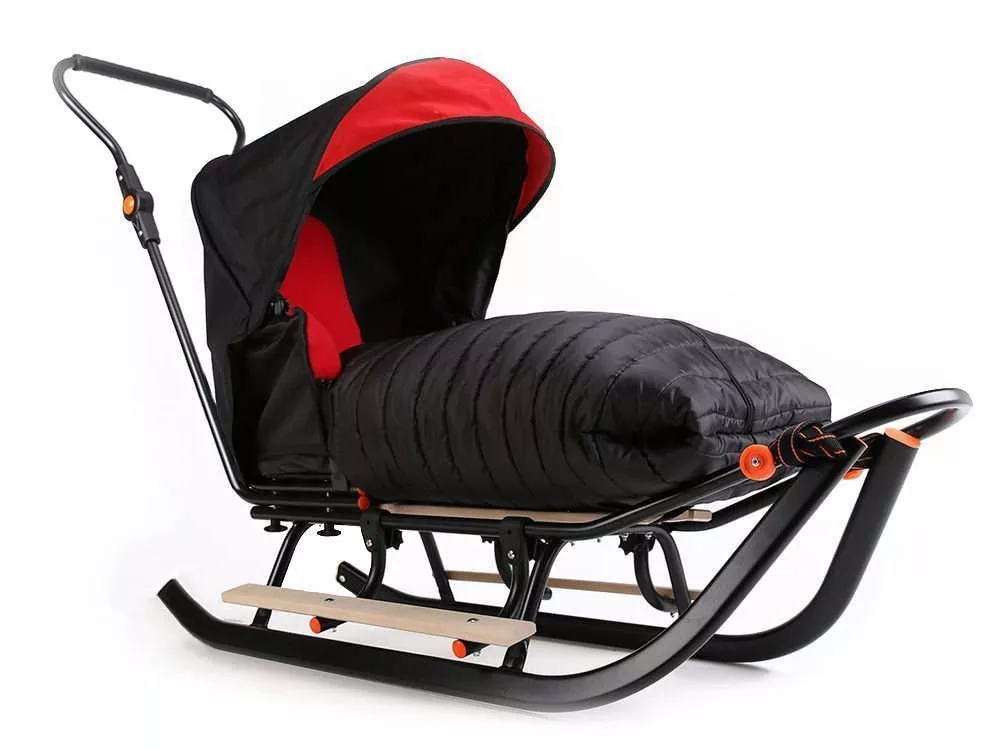 SCHLITTEN mit Haube, Schieber, Rückenlehne und Fußstützen. Komfort und Bequemlichkeit #801X