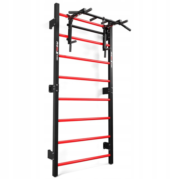 Während des Trainings  können Sie ganz einfach von einer Klimmzugstange zu einem Barren wechseln . Befestigen Sie dazu einfach die speziellen Griffe an einer beliebigen Sprosse der Leiter.