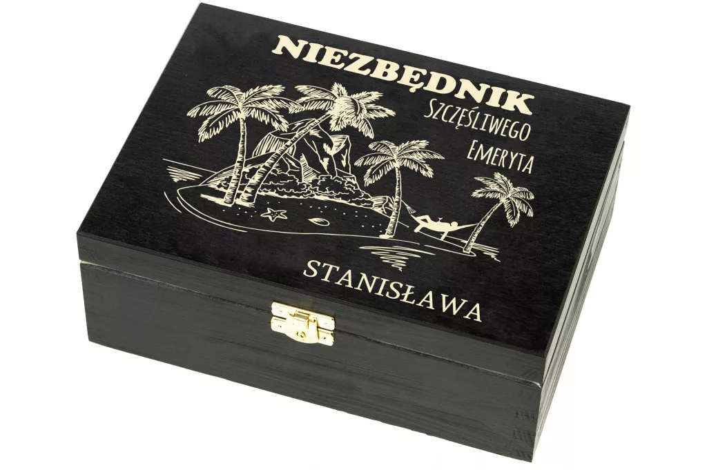 Wychodząc naprzeciw Państwa oczekiwaniom stworzyliśmy skrzynkę w postaci NIEZBĘDNIKA DLA EMERYTA. Niezbędnik w kolorze czarnym to elegancki i stylowy Prezent dla każdego emeryta, który ceni sobie tradycyjne i ręcznie wykonane przedmioty. Ten niezbędnik jest wykonany z najwyższej jakości drewna i starannie wykończony, dzięki czemu prezentuje się bardzo ekskluzywnie. Mogą Państwo wręczyć prezent w taki sposób, że nie tylko zawartość będzie prezentem, ale także ich opakowanie. Jest to wyjątkowy prezent, który z pewnością zostanie doceniony przez każdego.  Skrzynka z Państwa indywidualną dedykacją i życzeniami, będzie stanowić niezapomnianą pamiątkę na długie lata.