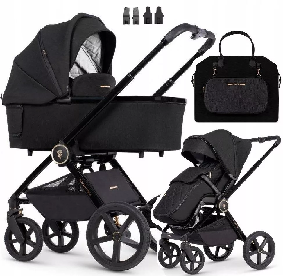 VENICCI TINUM Upline 2in1 All Black Kinderwagen schwarz und gold +ad+t+k+ś+f+m bog wy