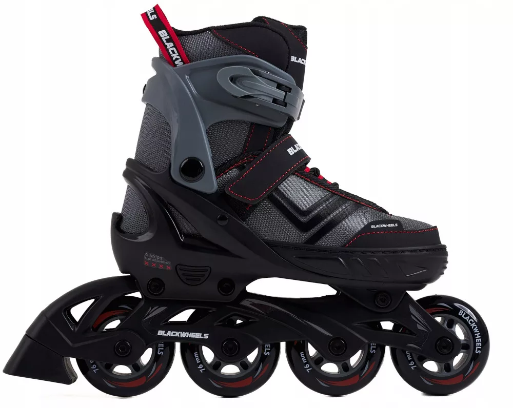 BlackWheels Playful to przede wszystkim lekkie i niezwykle wygodne rolki, które idealnie sprawdzą się podczas jazdy rekreacyjnej. Wysoki komfort to nie tylko zasługa regulacji rozmiaru, co jest dużym plusem w przypadku młodszych osób. Przy projektowaniu zadbano o wysokiej jakości materiały, jak np. kompozytowa płoza, która cechuje się dużą elastycznością. Warto zwrócić uwagę też na połączenie miękkiego wnętrza buta z usztywniającą skorupą, co idealnie zapobiega otarciom – nawet po wielu godzinach jazdy. Do tego zastosowano małe koła, które gwarantują lepszą zwrotność dla osób początkujących. Produkt swoim kolorowym designem oczaruje nie tylko dzieci – BlackWheels Playful to jednocześnie sprawdzone rolki dla osób dorosłych, które chcą rozpocząć naukę jazdy na rolkach.