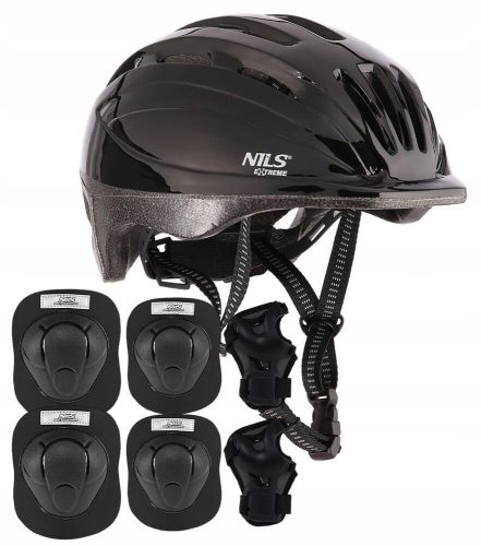 • Zestaw zawiera: Nowy, oryginalny kask marki NILS, Ochraniacz na nadgarstki: 2 szt., Ochraniacz na łokcie: 2 szt., Ochraniacz na kolana: 2 szt., nasz firmowy kalendarzyk