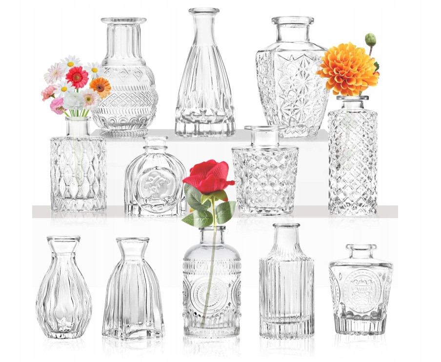 Vintage mały wazon ze szkła kryształowego 12 szt., przezroczyste mini wazony