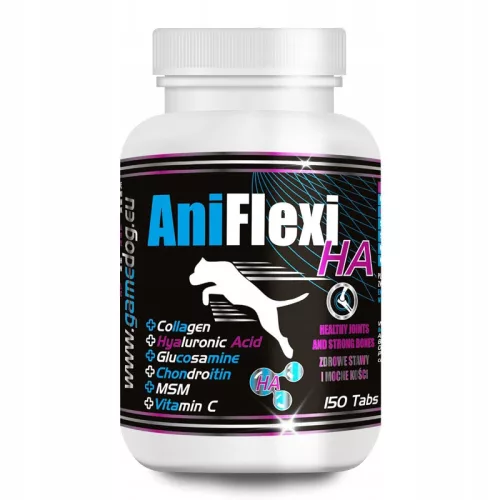 ➡️AniFlexi HA to suplementem diety dla psów, wspomagający prawidłową pracę układu ruchu. Składniki aktywne produktu zmniejszają stany zapalne i dolegliwości bólowe w obrębie chrząstek, a także poprawiają elastyczność i ruchomość stawów. Regularne stosowanie preparatu wpływa pozytywnie na pracę układu ruchu i przeciwdziała postępowaniu zmian degeneracyjnych w stawach.