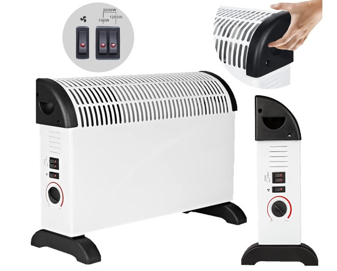 GRZEJNIK ELEKTRYCZNY KONWEKTOROWY TERMOSTAT 3 TRYBY 750W 1250W 2000W NAWIEW